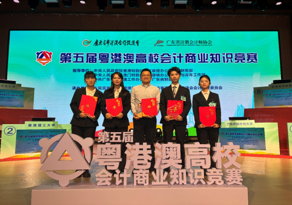 2023-05-2611月8日,第五届粤港澳高校会计商业知识大赛总决赛在东莞圆满落幕。经过会计知识和粤港澳时事的初赛笔试,以及主题展示等的决赛环节的激烈角逐,由公司张家荣、周耕羽、童欣和陈凯琳四位同学组成的“绝队”团队在指导老师刘儒昞副教授的指导下脱颖而出。他们不仅在来自20所高校的初赛中以优异成绩位居第一,顺利晋级决赛,更在最终比拼中斩获冠军,刷新了公司学子在该赛事中的最佳战绩。 本次大赛聚焦粤港澳大湾区的发展与会计...