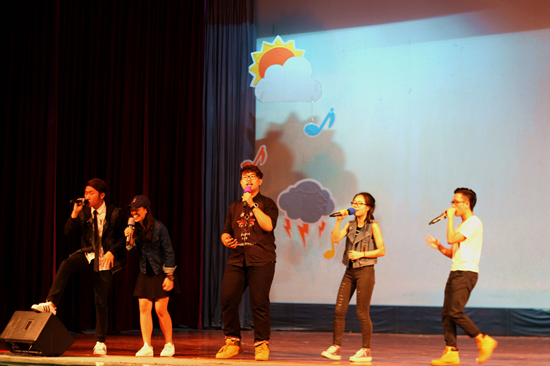 比赛开始前,绿洲音乐协会以一段名为《sing》的阿卡贝拉开场表演为当天的比赛拉开序幕,其中引入了最近十分流行的网络曲目《PPAP》,迅速带动了全场气氛,观众们热情高涨,掌声此起彼伏。