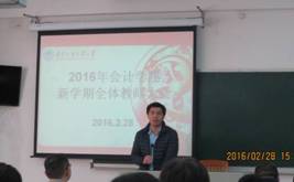 左志刚副经理就本学期的科研、国际化工作做具体介绍,鼓励各位老师积极申报科研项目及课题;公司将组建新的科研创新团队,提高公司科研协作能力以及科研国际化水平。汤胜副经理就公司财务状况以及研究生教育工作做了通报,详细介绍了公司的绩效工资发放情况以及今年度公司研究生报考和考试的具体情况。蒋基路副经理指出新学期旗下产业的三个重点在“准备本科教学评估”、“启动EPASS评估”、“香港会计师公会评估实际考察”,要求各位老师从新学期开始切实做好评估准备工作。黄晓梅副书记就新学期员工工作进行了要点介绍,指出新学期员工工作重点包括党建、强化第二课堂优化公共服务、加强实习基地建设、做好员工会工作等。