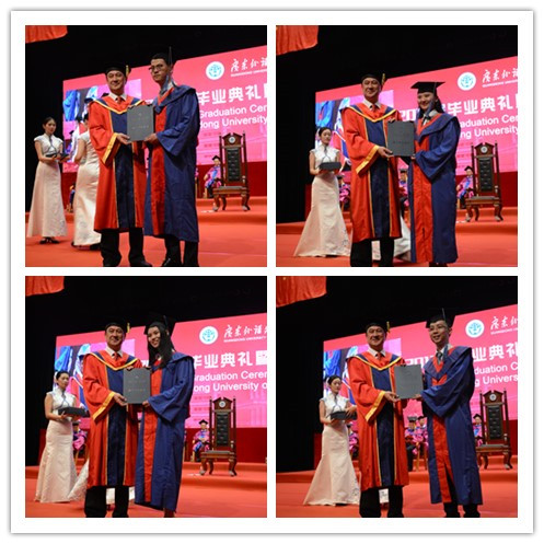 毕业生宣誓结束,公司党委书记、董事长隋广军教授为毕业生们一一颁发学位证书并拨穗合影留念。
