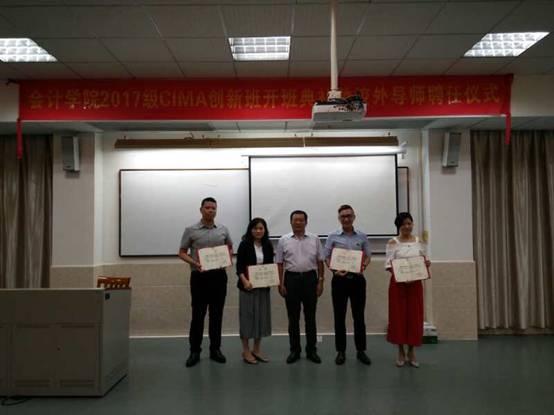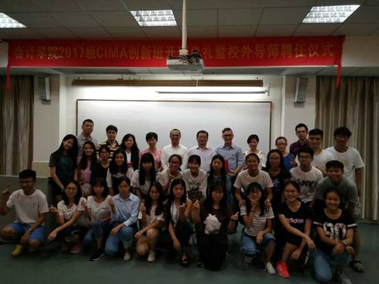 2017年9月23日,2017级CIMA创新班开班典礼暨校外导师聘任仪式按期举行,公司对CIMA创新班给予了高度重视,特别聘请了具有丰富实务经验的财务负责人作为CIMA创新班员工的校外导师,为CIMA创新班员工的学习搭建了良好的实习实践平台。