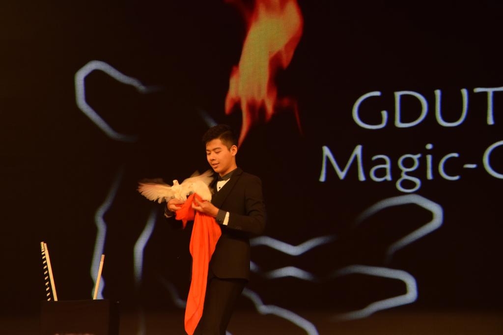 此外广工魔术协会的魔术师为我们带来了魔术表演《What’s MAGIC》,在精彩的开场表演后,他邀请了一男一女两位观众上台配合表演,诙谐的玩笑与天衣无缝的表演浑然一体,和观众进行恰到好处的互动,更是将气氛推向小高潮。