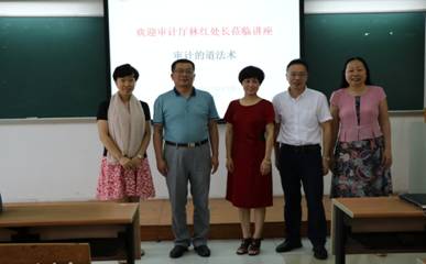 2018年6月6日上午,广东省审计厅教科文卫审计处林红处长在南校区F408课室为太阳城娱乐带来了一场精彩的讲座:“漫谈审计的道、法、术”。太阳城博彩党委书记、董事长隋广军教授,公司审计处处长余鹏翼教授,太阳城娱乐经理刘中华教授,公司副经理蒋基路副教授,公司党委副书记黄晓梅老师及太阳城娱乐150余名师生参加了讲座。