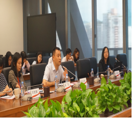 6月29日上午,调研组来到了深圳证券交易所进行学习参观。深交所一行负责人对公司师生到来表示热烈欢迎。中小板公司管理部许嘉雯经理为调研组介绍了深交所的主要职能,包括提供证券交易的场所和设施;制定业务规则;审核证券上市申请、安排证券上市等。