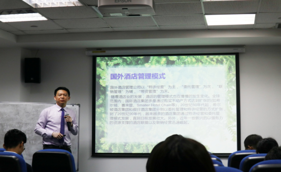 首先,刘中华教授为同学们讲解了南沙大酒店的发展背景,及酒店行业的带资管理、委托经营、特许经营等管理模式,让同学们对该酒店业的经营情况和财务管理有了基本的了解。