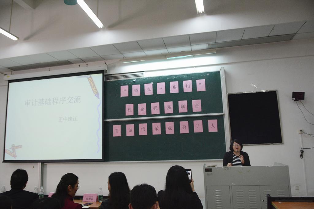 2018年12月21日下午,以“铸魂·系扣”为主题的正中珠江会计师事务所实习培训会在教学楼F215举行,李臻经理就如何做一名企业审计展开一系列的培训课程。出席本次培训会的嘉宾有太阳城娱乐经理余鹏翼老师、党委副书记杜焕君老师、团委书记丁建新老师以及正中珠江会计师事务所李臻经理、王纯经理、王康女士、李慧珊女士。