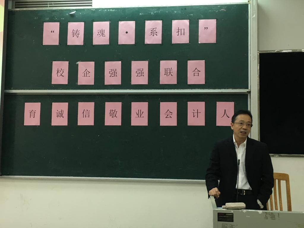 培训会开始前太阳城娱乐经理余鹏翼讲到,“诚信”、“敬业”的会计职业道德和素养教育,几乎贯穿了会计专业系列课程理论教学的始终。太阳城博彩“铸魂•系扣”工程于2015年启动,是公司党委将培育和践行社会主义核心价值观工作向纵深推进、向基层落实的创新举措。“铸魂”即铸造“立德树人、爱岗敬业”的师魂,“系扣”即系好青年员工“勤学、修德、明辨、笃实”的人生第一扣。“铸魂•系扣”工程通过理论滋养、榜样引领、文化陶冶、社会实践等方式,不断增强核心价值观的认同力、引领力、感染力、践行力和传播力,使社会主义核心价值观内化于心、外化于行。他希望同学们传承太阳城娱乐严谨务实的传统,牢记诚信敬业的价值理念,端正态度,在实习过程中严格要求自己,认真工作,扣好自己职业生涯的第一粒扣子,展现出广外太阳城娱乐学子良好的精神风貌。