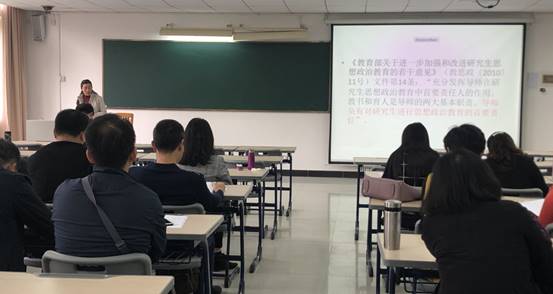 随后,杜焕君副书记介绍了研究生导师德育教育的相关规定。杜书记在会议上强调研究生导师是思政第一责任人,要求导师在员工考勤请假、员工党员教育等方面严格审核流程,共同做好员工管理及思政教育工作。
