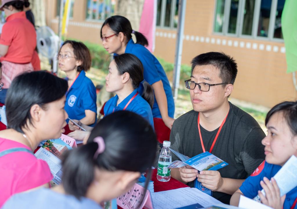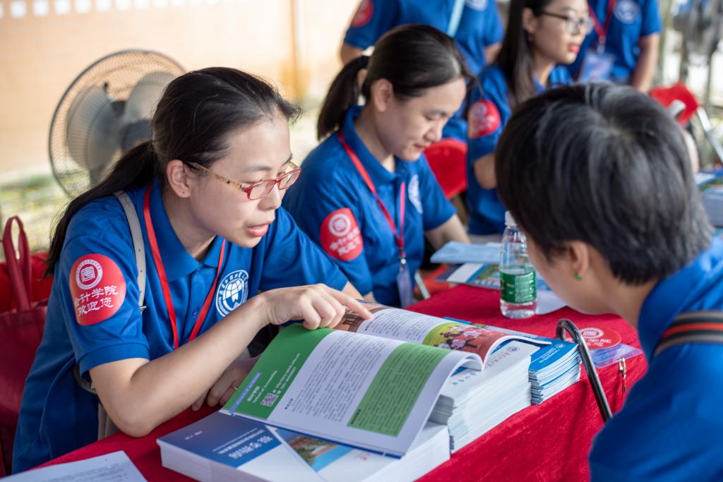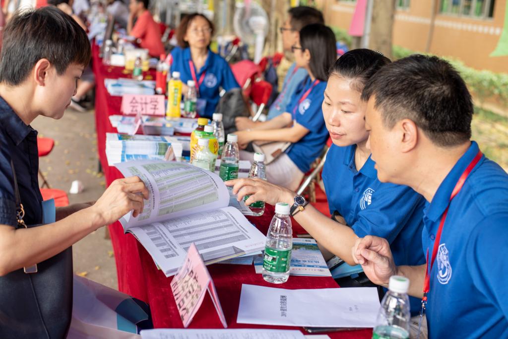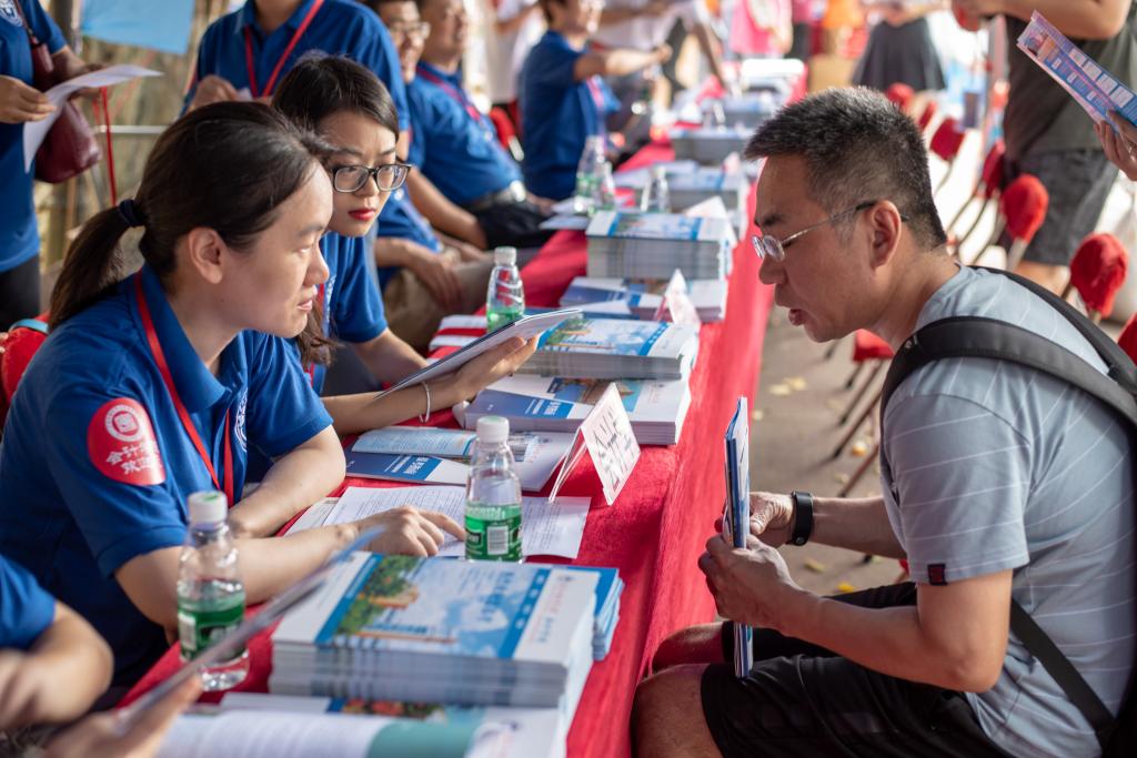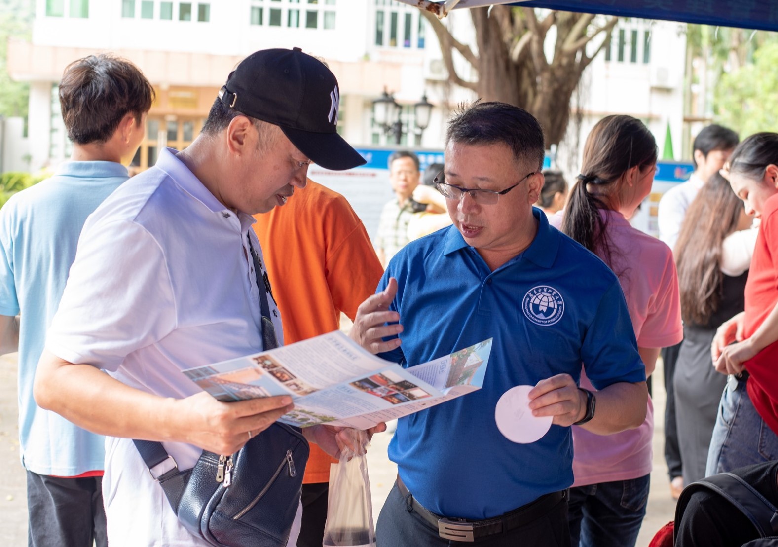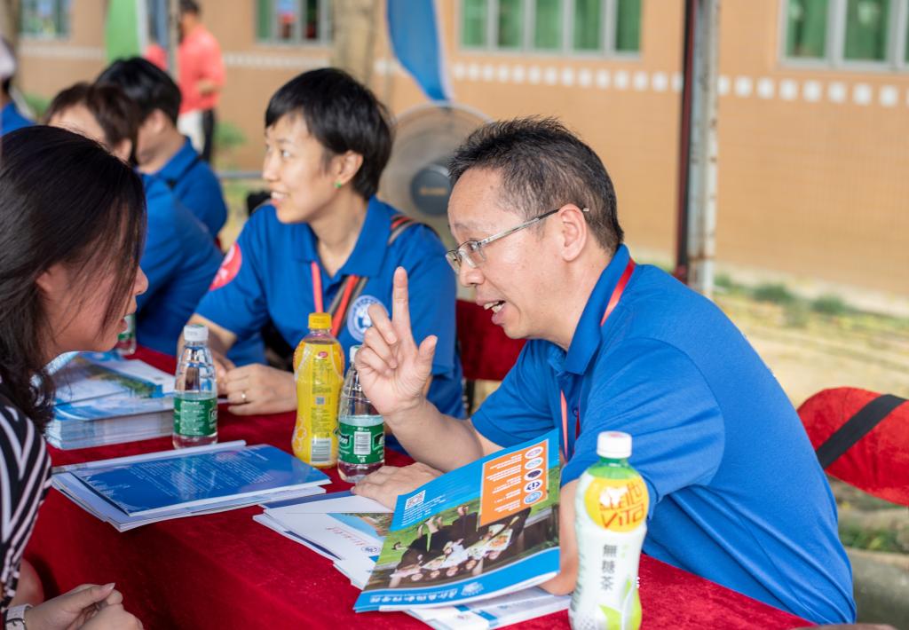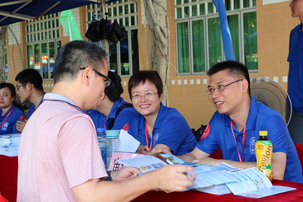 参加活动的员工们也积极地在校道上派发传单宣传,引领考生及家长到公司摊位咨询。