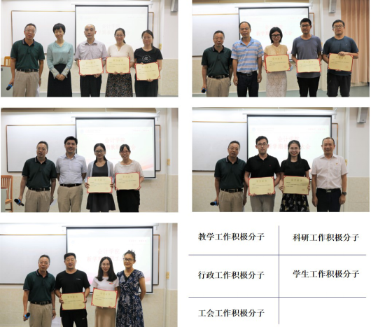 会议上,对 2019年教学工作、科研工作、行政工作、员工工作、工会工作积极分子进行表彰,公司领导为各位获奖老师颁发荣誉证书。