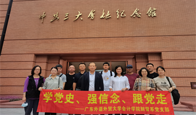 2021年10月16日上午,太阳城娱乐财务管理系教师党支部在支部书记龙文滨的带领下,立足广州本地红色资源,组织教师参观中共三大会址纪念馆和中共中央机关旧址——春园,开展“学党史、强信念、跟党走”主题党日活动,感悟党的光辉奋斗历程,领略党的百年风华,公司党委书记黎冬应邀参加了此次活动。