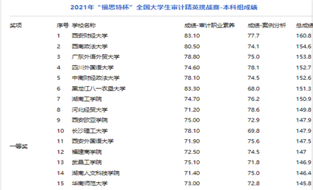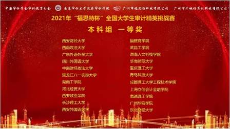 2021年11月14日,审计系主任黄浩老师率领张子婧、姚晓娟和刘子骁三位同学参加由中国审计学会审计教育分会主办,南京审计大学承办的第四届“福思特杯”全国老员工审计精英挑战赛,来自南京审计大学、西南政法大学、中南财经政法大学、东北财经大学、江西财经大学、西安外国语大学、上海立信会计金融公司、华南师范大学等全国283个兄弟院校参赛,累计共3000余名师生参加了本次比赛。