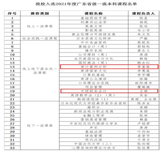 近日,广东省教育厅公布了《关于公布2021年度省级一流本科课程认定结果的通知》,公司2门课程入选2021年度省级线上线下混合式一流本科课程。