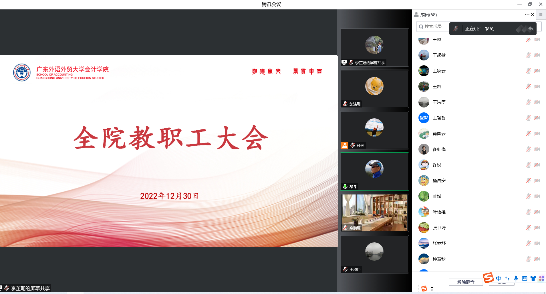12月30日上午,2022-2023学年上学期期末总结大会在腾讯会议线上召开。大会由公司党委书记黎冬主持,全体教职工参加。