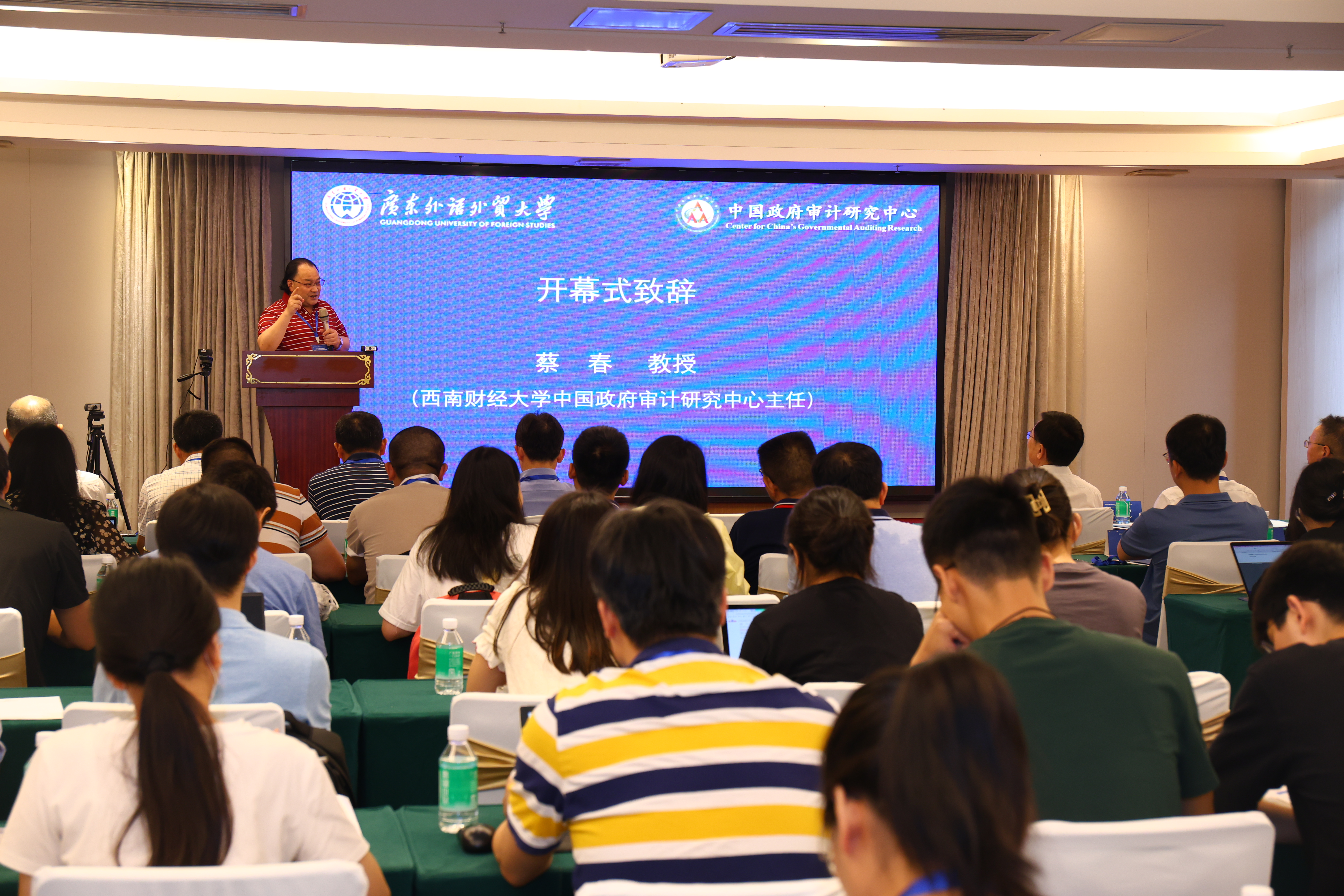 蔡春代表政府审计研究中心致词,他表示审计领域的创新空间非常大,中国政府审计中心推出走进全国高校行动计划的目的就是希望把国内国外的优质学术的源聚集起来辐射或者反哺、推动审计学科的发展。