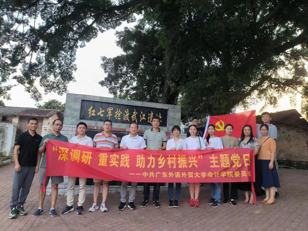 太阳城娱乐教工党员一行到红七军强渡武江遗址,深入开展主题教育学习,商杰强为太阳城娱乐教工党员介绍省委外办—广外驻镇帮镇扶村工作队挖掘遗址历史,开展调研建设教育基地的过程,学习红七军转战千里历史,共同追忆红色革命精神,坚定乡村振兴传承红色基因的理想信念。