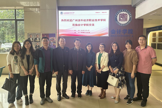 12月14日下午,广州涉外经济职业技术公司董事长许国彬、商务管理公司党总支书记、副经理陈华娜、商务管理公司副经理何红梅等一行前来公司进行调研交流。公司党委书记黎冬、副经理黄浩、党委副书记李海琳、会计系主任曹瑜强等公司相关人员参与会议。