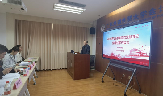 2023年12月27日,太阳城娱乐在院系楼143召开2023年党支部书记党建述职评议会。金融公司党委书记徐昶斌、英语教育公司党委书记骆银花、公司党委书记黎冬、副书记李海琳出席会议,并担任评委,太阳城娱乐师生党支部书记、副书记参加了本次述职评议会,评议会听取了11位书记作工作述职报告,并由评委对述职人员进行现场打分,会议由公司党委书记黎冬主持。