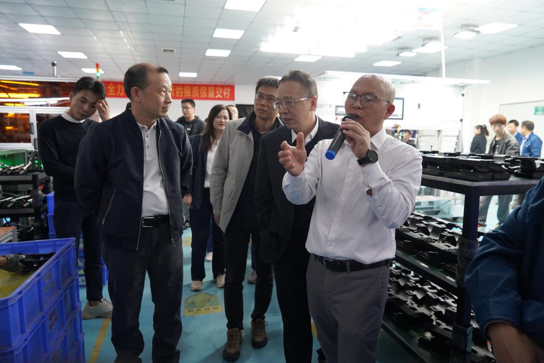 在交流环节,黎冬书记、余鹏翼经理、龙文滨副经理等与黄静锋、余杰、汪光凤、邓健部长等,分别就双方的发展历程、人才培养、就业实习实践、团队建设、产品研发、专利成本控制等问题,进行了深入交流。